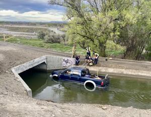 Officers found a pickup truck partially submerged in the canal with the driver stuck inside. Richland Fire arrived and helped the driver out of the truck.