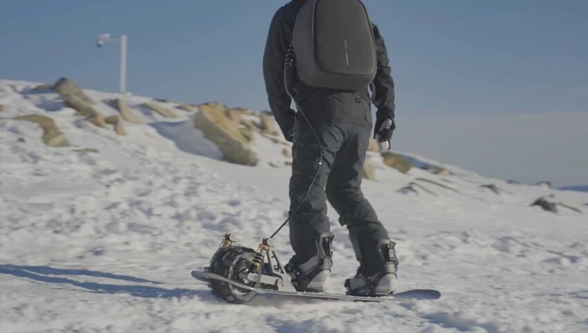 First, let’s look at the Electric Moto Snowboard. The concept is more like a jet ski for the snow with a single track, And no skis. Based on the product video, this is made in Russia. Check it out.