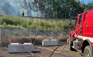 According to Tim Harkins, Kennewick Fire Department Battalion Chief, the fire started in a homeless encampment and spread to the north side of the tracks.